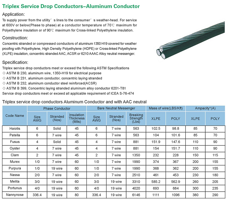 Triplex Service Drop Conductors-Aluminum Conductor