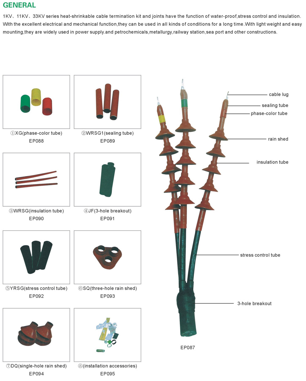 SPECIFICATION TABLE OF 11KV HEAT SHRINKABLE CABLE ACCESSORY