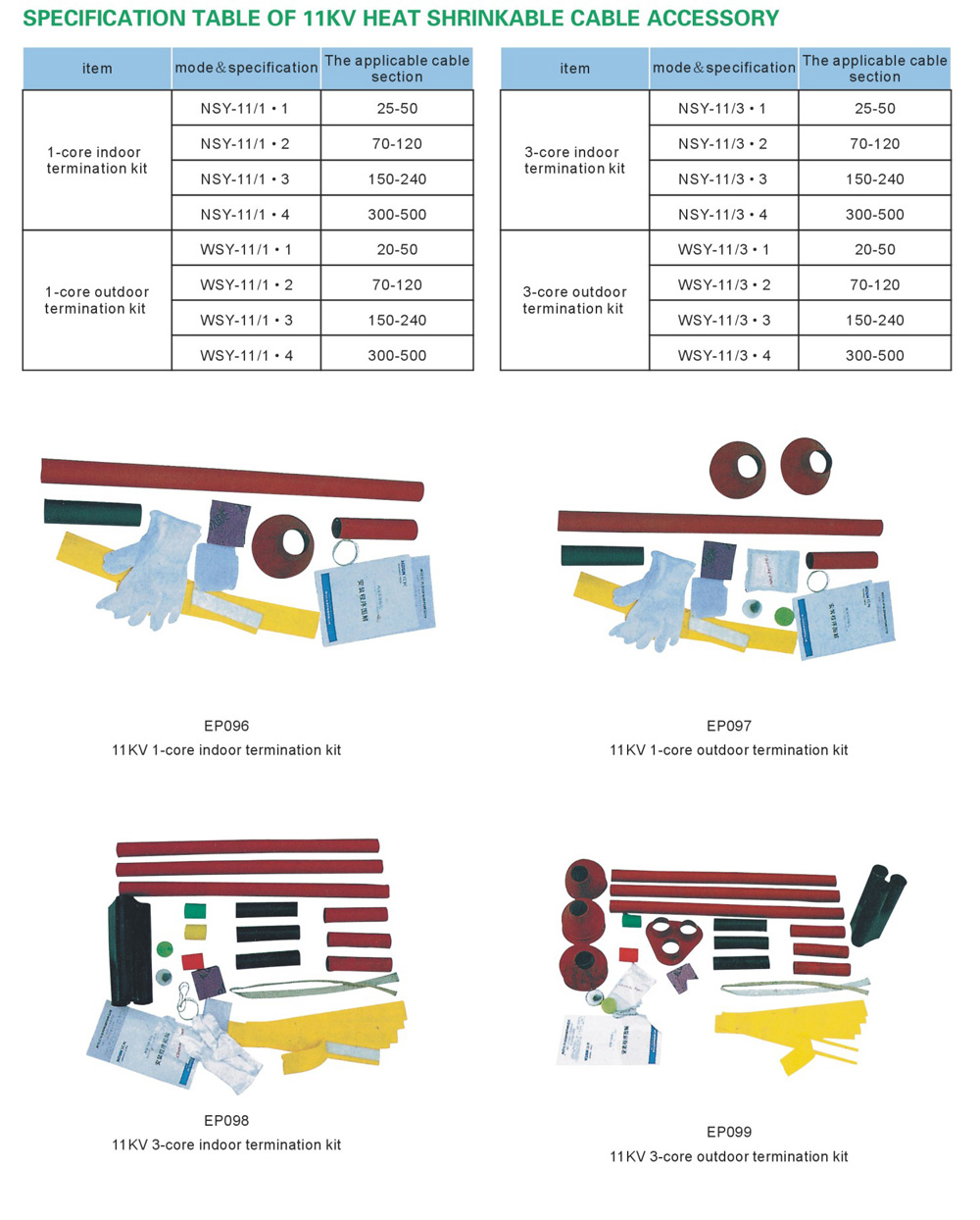 SPECIFICATION TABLE OF 11KV HEAT SHRINKABLE CABLE ACCESSORY