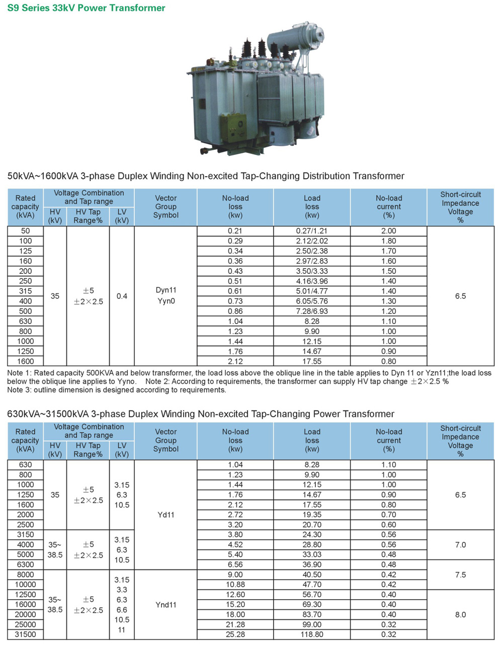 OIL IMMERSED TRANSFORMER S9 Series 11kV Distribution Transformer